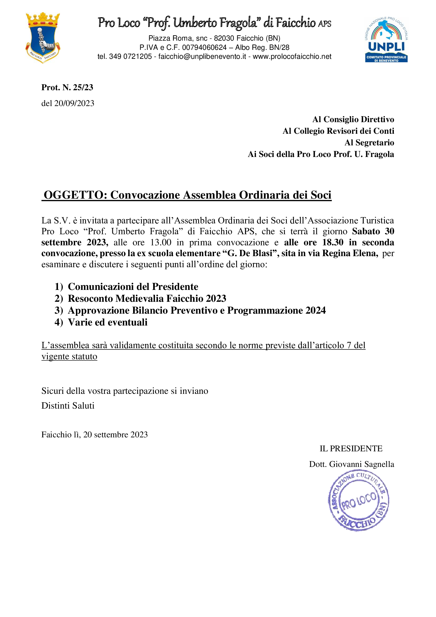 Il presidente della Pro Loco Giovanni Sagnella afferma: “Dopo il successo riscosso dalla manifestazione lo scorso anno, il direttivo della Pro Loco non ha avuto dubbi sul riproporre l’evento anche per il 2024. Medievalia si realizza grazie alla sinergia dell’intera comunità di Faicchio, che ogni anno da prova di avere orgogliosamente a cuore questo evento. Questo perché Medievalia oltre ad avere un grande impatto per la promozione turistica e culturale del paese, rappresenta anche un forte valore identitario per Faicchio e le sue otto contrade.”